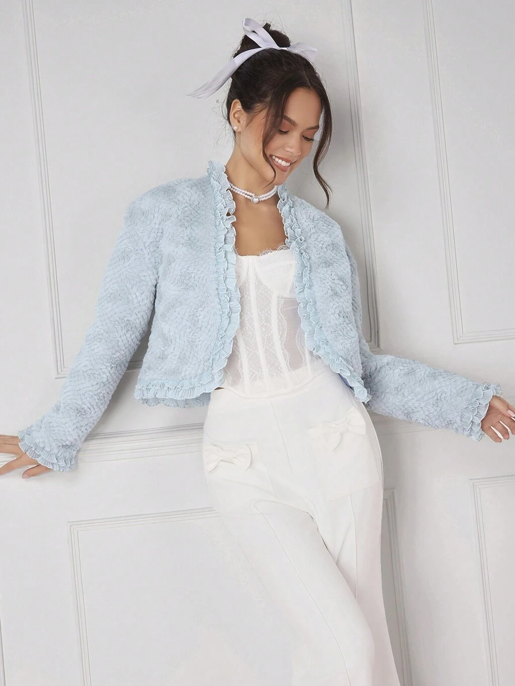 Women's Solid Color Long Sleeve Fluffy Collar Short Jacket, Fall Women Clothes,Winter Women Coats,Vintage Fur